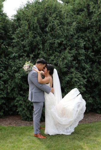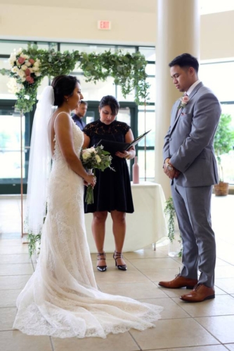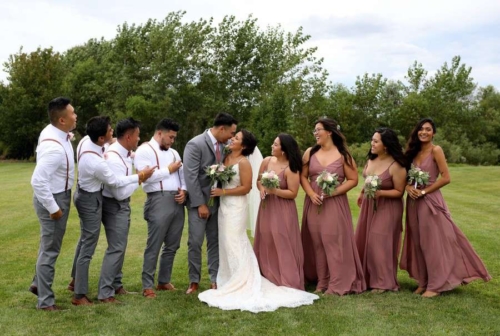 Photographer’s Comments: “August weddings have officially come to a close and I could not have asked for a more gorgeous wedding to end August with. Seriously Rita and Jame’s wedding was absolutely stunning, filled with so much tradition and heritage, and there was a whole lot of love for these two as they became husband and wife. Plus their wedding seriously had some of the best Mexican food I have ever had, and one of the most filled and lively dance floors. “Rita and James seriously thought of every small detail for their day. From the insanely gorgeous florals which were everywhere including the ceremony arch, and every table at the reception, to the little touches of mauve and rose gold throughout their dessert table, to their gorgeous backdrop for their cake stand, and gifts. There was not a single aspect of this day that was not thought of and it seriously came together in such a stunning way. Their florals were so dreamy and I loved seeing them in their centerpieces at the reception. Their dessert table was seriously the best! I mean cake pops, rice crispies, chocolate dipped pretzels, churros, and caramel corn I was in heaven, and ate way too much dessert. Plus there were the amazing cupcakes and a second round of dessert brought out mid-reception. All of it perfectly color-coordinated with the palette and I don’t think a single guest left that wedding not stuffed. But that was also because they had insanely good homemade Mexican food. I mean homemade chips and salsa for cocktail hour, and the best tacos I have seriously ever had. This was a wedding where I ate way too much, but wished I could of ate so much more. While I did get sidetracked on the food, it was perfectly complimentary of Rita’s heritage, which was shown throughout the day. From part of the ceremony being in Spanish, to the Mexican cuisine, to the La Vibora de la Mar, a traditional wedding dance similar to London bridge. This wedding was filled with heritage and culture and it made Rita and James’ day so special and so unique to them. The Rosales wedding was seriously one of the most intricate and thought-out weddings I have ever photographed and I seriously loved it. “Besides the details, Rita and James were surrounded by so much love. Seriously they had so many friends and family at their wedding who were so excited to celebrate with these two and that includes their bridal party. I have to first say that Rita and her girls are seriously stunning. Their perfect olive skin tone with dark hair, seriously was a little jealous. They were all so dang pretty, and the mauve dresses were so complimentary to them. But anyways, Rita and James’s bridal party was so sweet and such a pleasure to work with. They were all so excited for Rita and James, pouring out endless love and affection on these two, making sure every little thing was taken care of and that the couple was having the day of their dreams. They kept the party going and were seriously such a fun group keeping Evan and I laughing all day. Besides the bridal party, Rita and James received so much love from family and friends. They seriously had so many friends at their wedding who danced the night away with them, and had such a blast. I have never shot a wedding where the couple had so many friends at their wedding, but if you met Rita and James, you would quickly see why these two are so loved. Their family also poured so much love and support on them, and Rita’s mom and sisters were seriously such MVPs. Rita’s sister officiated the wedding which I thought was so sweet. Rita’s mom and sisters spent most of the reception making sure guests were happy and well-fed, offering to clean up plates, and offering drinks. They were seriously the sweetest and I wish I could have taken every single one of them home with me. “I could literally talk about Rita and James’ details, family, friends, bridal party, literally every aspect of their wedding for days, but I do want to get to the couple at the middle of it all. Rita and James are seriously such a cute couple, like catch them on the cover of a magazine cute. Seriously I absolutely adore these two. Rita was seriously one of the most stunning brides I have ever photographed. She was just radiating on her wedding day and looked so beautiful. James spent her bridal portraits complimenting her, telling her how pretty she was and how happy he was that she was Mrs. Rosales. It was seriously the sweetest. James was also one handsome groom so these two were a match made in heaven. Not only are these two so cute together and so sweet, but they also just love each other so much and it shows. The second James turned around for the first look Rita lit up, smiling from ear to ear and you could just see how excited she was for this day. They spent portraits stealing glances at each other, and smiling every time they made eye contact. Seriously these two are like those two crazy in love teenagers you see in movies. It is so sweet, and I love when you can just see how in love a couple is. These two are seriously crazy in love and they were such a pleasure to work with for their wedding. Definitely feeling sad that it is over.”