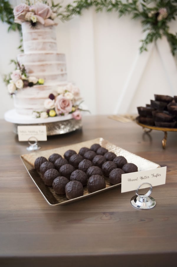 - Strawberry cake pops, peanut butter truffles, brownies, white chocolate dipped pretzels, chocolate fudge cupcakes with dulce de leche filling
