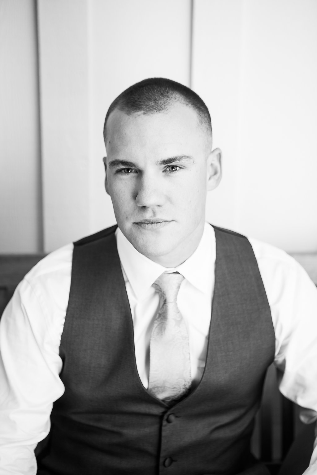 - Groom wore a dark grey, three piece suite with a green paisley tie rented from The Men’s Warehouse