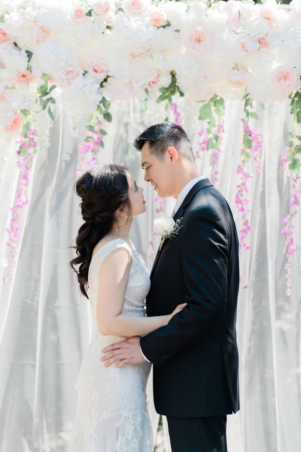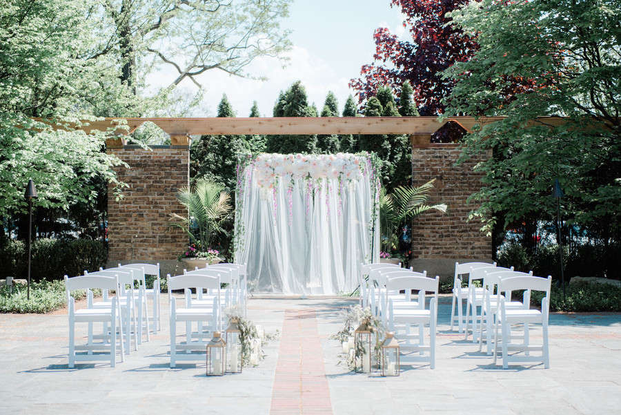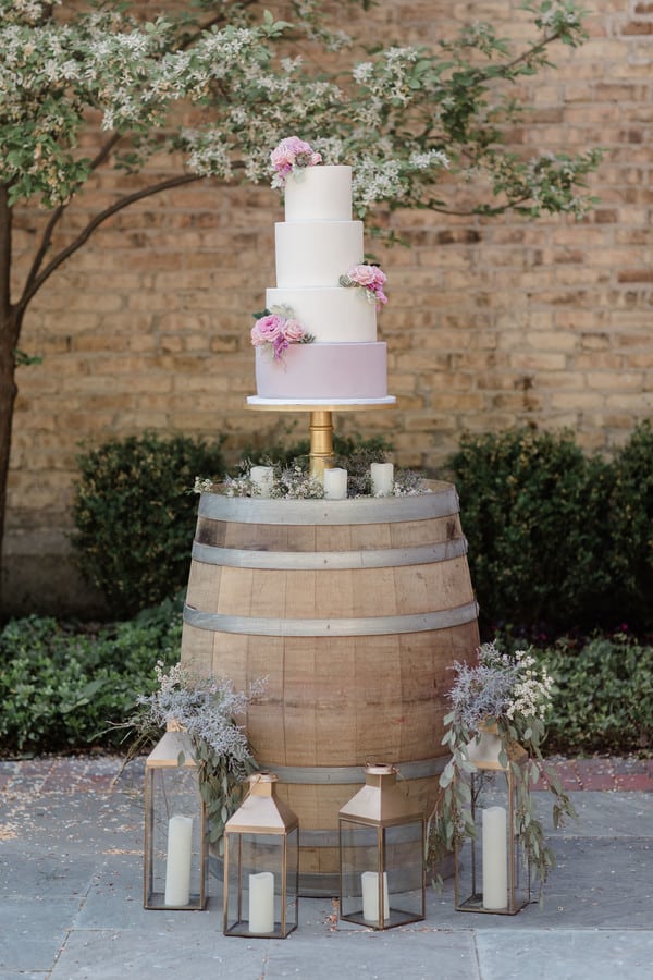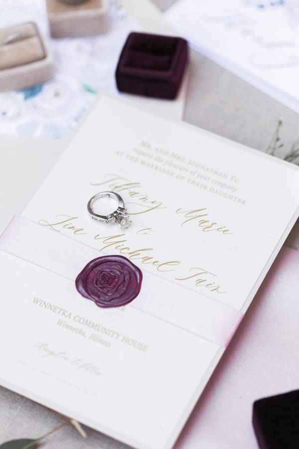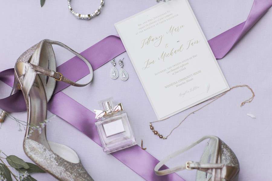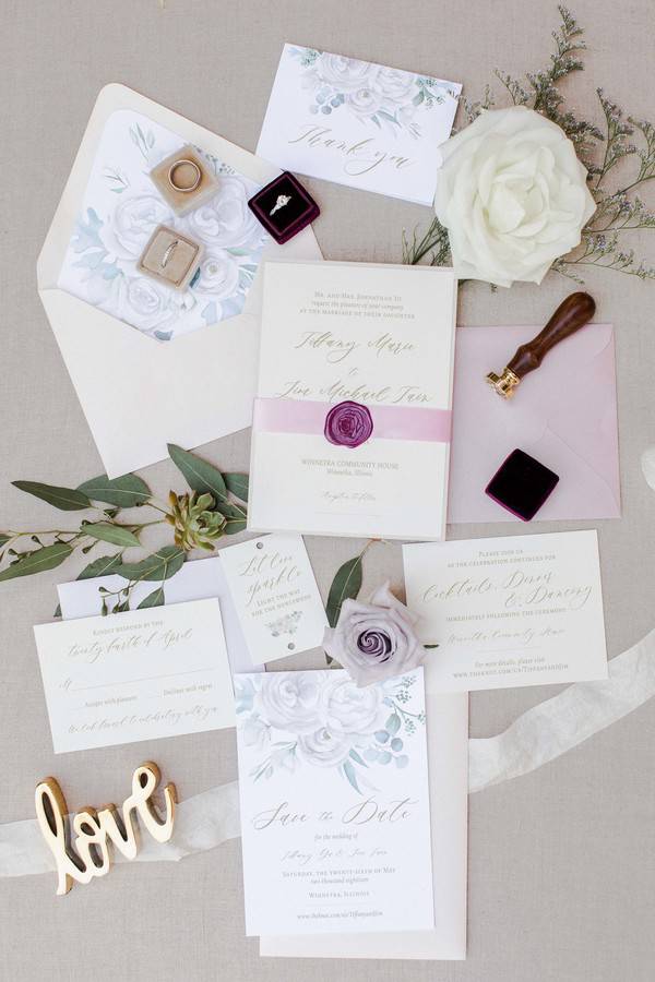 It was one of the hottest days in the Spring in Winnetka, Illinois. We put together this styled shoot in the beautiful grounds of the newly renovated Winnetka Community House, a historic Tudor Revival style structure in Chicago’s North Shore.   Inspired by their gorgeous gardens with its brick brownstones and luscious greeneries, Michelle and Yasmin Photography, with the help of Savvy Rose Events, pieced together an overall look where rustic meets luxury. From the golden table settings and lanterns to the lush purple table runner, BJJ Linens and Boho Blush made the perfect combination for this design. Add them to the charming farm table, wooden chair and wine barrel and you’ll get a feast for your eyes. Courtesy of Style and Grace Events, the florals were made up of white and purple roses, succulents, dusty millers, brunia silvers and eucalyptus providing that soft look. The cake, a simple 4-tier in mauve and ivory fondant, was adorned with delicate sugar flowers which included roses, sweet peas, succulents and dusty miller leaves, all expertly handcrafted with bean paste by The Quintessential Cake. Emery Ann Designs gifted us with her elegant stationery incorporating purple and green florals and classic script font that screams romance. Our beautiful bride wore stunning novelty lace gown from Honey Bridal. Her romantic look was completed by Manifest Makeup and hair by Gia Tovar.   PS: Our models are actually a real couple who has been married for 10 years (going on 11)! They already have 2 young, beautiful kids. They have always expressed regret of not having enough time for outdoor portraits for their wedding and wanted to have an anniversary session to make up for it. A simple anniversary session turned into a full blown styled shoot and they couldn’t be more happy with how the day turned out! We were all thankful for our wonderful vendors who made this special for our couple. It was such a great experience, despite the record heat of Spring in Chicago.