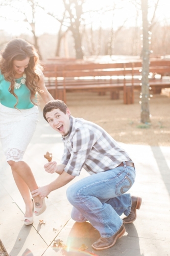 From the photographer: “I loved Tanner and April’s engagement story. Tanner is a youth pastor and April helps out at their weekly meetings. If you’ve ever attended a youth group you know it can be high energy with fun games. This particular week Tanner asked that April come up and participate. The game was blindfolding your partner and having them feel an item and have to name it. The team who guessed the most items won. Each pairing went, and when it was April’s turn she was given her engagement ring to feel. She said when she took off her blindfold Tanner was down on one knee holding the ring – the auditorium erupted. I love that they incorporated their youth kids as well as made it a public engagement. “From the looks of it, April and Tanner had a picturesque first meeting. Tanner would say that the hospital doors opened one day and a light shone down on April’s face. Both working in the hospital environment, it didn’t take long for word to get around that these two would be a perfect match. Tanner, being a youth pastor decided to incorporate his youth into proposing to April and the rest is history. They’re getting married this fall.”Gallery