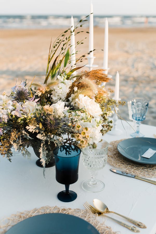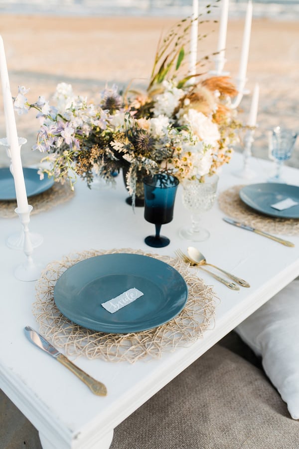 Vendor’s Remarks: “As we are approaching spring, I wanted to create something beautiful to say farewell to winter. It has been a super nasty one this year, so I was inspired by all the cool tones of the blues and whites in all the details. “I really love how romantic and soft everything is, from Alison’s flowing tulle skirt to the torn edges of the invitation suite. All of the creatives involved really came together to bring my vision to life.”Gallery