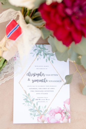 “Chris and Samantha were able to have the wedding of their dreams through a non-profit charity called Vows for Vets that a retired Marine colonel and his wife started to give back to the brave men and women who have served. The entire wedding was generously gifted by the colonel and his wife, and from all the vendors from the flowers, food, cake, music, tables and chairs, everything.