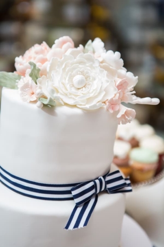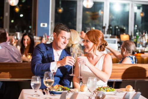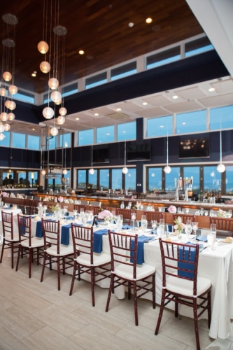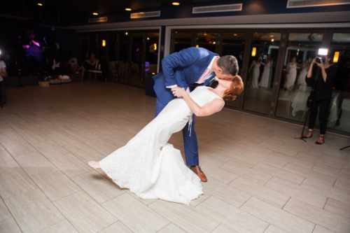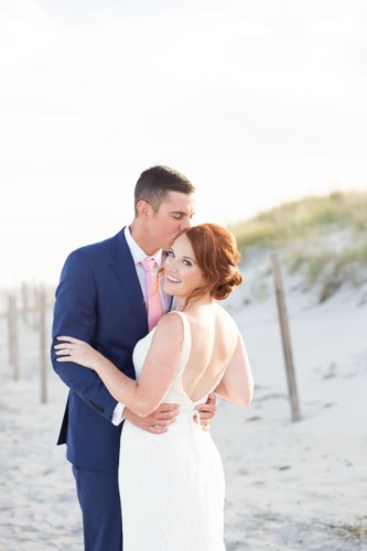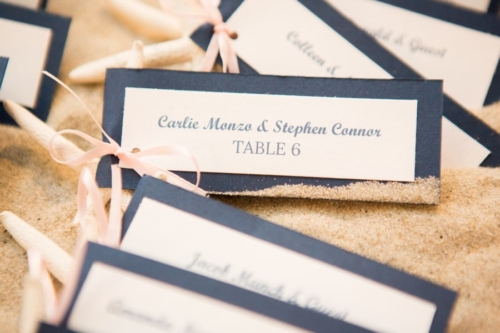 Q: Tell us about your wedding! “The inspiration behind our day was our mutual love the beach. We both love the ocean and spending time outside together. We wanted to keep the color palette very simple and classic so navy and blush were our colors.” Q: Let’s talk wedding decor “The venue overlooks the beach and has lots of glass windows so we decided to incorporate lots of candles for a very romantic look. Our DIY DECOR included the card box which we painted. in addition, we  built the place card box and printed/cut the place cards ourselves and tied them to the starfish.” Q: What were the florals like in your wedding? “We didn’t go overboard with the florals and kept them simple by using white and blush. My favorite flower is pink roses so they were a central theme in the bridal bouquets.” Q: Did you personalize the day in any way? “Our favorite part of the wedding was the amazing band. The guests had so much fun dancing the night away and having the live entertainment. We personalized some foe decor by displaying photographs of our grandparents and parents on their  wedding day during the reception.” Q: How did you both choose your wedding day look? “I knew that I wanted  a lace  dress that would be appropriate for the end of summer. I ended up choosing a beautiful all lace gown with a long train and open back. I added a crystal belt to add more detail and personality to the  dress. The groom wore a blue suit and light pink tie which allowed for a coastal and sophisticated look.” Q: How did you meet? “We met and started dating freshman year of college. Josh proposed along the waterfront at Penns Landing on philadelphia PA. the best part was that he had also planned a sucrose party so when we arrived home following the proposal I was greeted you a house full of our closest family and friends.” Q: What was the most anticipated or special moment of your wedding day? “The most aniciapted moment of our wedding day was probably our first dance .We had our first dance song picked out for years so it was exciting to finally be in the moment we had been thinking about.” Q: Do you have any advice to share with other couples planning their day? “I know this is cliche, however our advice would be to enjoy  all of the planning! It flies by, we were engaged for 2.5 years and the time still past so quickly! At times it can seem overwhelming but in the end the day will be perfect no matter what.”Gallery