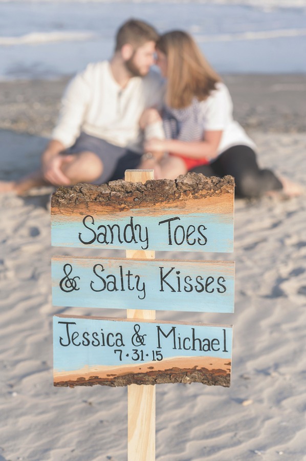 Last night I read that both the east and west coasts are getting hit hard with a ton of rain, and I’m  knocking on wood that it stays as rain.  Let it hold off for another two weeks, and then snow for Christmas morning! Due to the inclement weather, we are heading to the beach for today’s post to reminisce over sandy toes and sun on our faces.The title of this sweet engagement shoot says it all. I love eye catching decor details and props. If the beach happens to be your favorite location for you and your loved one, this is the perfect idea for an engagement.Thank you to Ashlee Mintz Photography for this lovely submission and congrats to today’s couple who will be married on July 31st, 2015 in Philadelphia.Remarks from the photographer: “This engagement session was filled with salty kisses and sandy toes. This couple wanted there engagement session to take place at the beach. They first met in Sea Isle and knew it would be the perfect spot for there engagement pictures. Sea Isle has many special memories for both of them. They also wanted to include there adorable three year old daughter, who definitely stole the show with her cute laugh and smile.”