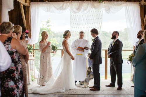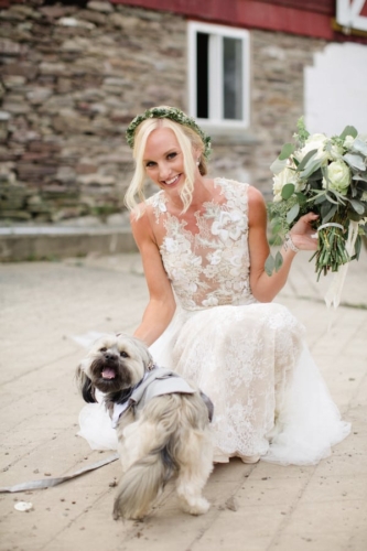 Photographer’s Comments: “Sara and Josh are high school sweethearts that you immediately feel like you’re friends and are just incredibly warm and welcoming. “The most common thing I’ve heard about Sara while in her company is how she just radiates sunshine and it couldn’t more evident in their photos or how she treats those around her. “Some favorite highlights from their wedding include their pup Gus who roamed throughout the day and resulted in a favorite reception photo EVER, her dress that looks like it was custom made just for her and their love of greenery which made appearances in her succulent crown right down to their wedding favors. “Their wedding day called for rain all day yet we didn’t feel even a drop. All things combined made for their Barn at Glistening Pond wedding one for the books!”Gallery