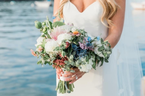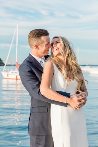 Photographer’s Comments: “Sarah and Rich met at Georgetown University at the beginning of Sarah’s freshman year (Rich was a senior). Sarah grew up in Portland and had never lived outside of Maine, so Washington D.C. was a big adventure for her! Rich grew up in New Jersey, so he wasn’t too far from home. They met at a party and immediately hit it off. Knowing that Rich was going to be graduating that year and Sarah had just started her college experience, they didn’t start officially dating but were definitely smitten with each other! “Rich graduated and moved to New York City and they kept in touch through emails and Rich’s occasional visits back to Washington, D.C. After her junior year of college, Sarah got a summer internship in finance in New York City and was excited to be living in the same city as Rich. “Rich welcomed her to New York by taking her on a tour of the city via helicopter! After a few weeks of summer courtship in the city, they made it official and started dating. They fell in love over that summer and Sarah knew Rich was the one when he visited her in Maine and got along so well with her family. He loved Maine as much as she did! The two were long distance during Sarah’s senior year of college but she moved to New York upon graduating and they were ecstatic to finally be permanently living in the same place. “They spent the next few years living separately with friends in New York, but spending lots of time together – becoming integrated in each other’s lives. They moved in together in June of 2016 into an apartment that overlooks the Hudson River and Battery Park; making Sarah feel like she was home in Maine with the nature and water views. Rich proposed in July of 2017 on Lambert’s Cove Beach in Martha’s Vineyard. He figured out that the beach was 286 miles from Vinalhaven, Maine (where Sarah spent her summers growing up) and 286 miles from Westfield, New Jersey (where Rich grew up). It was the perfect place to “meet in the middle” and start a life together! “Sarah’s parents still reside in Portland and they couldn’t think of a more perfect place to get married. Maine is such a big part of who Sarah is and Rich has grown to love the state over his many years with Sarah.”Gallery