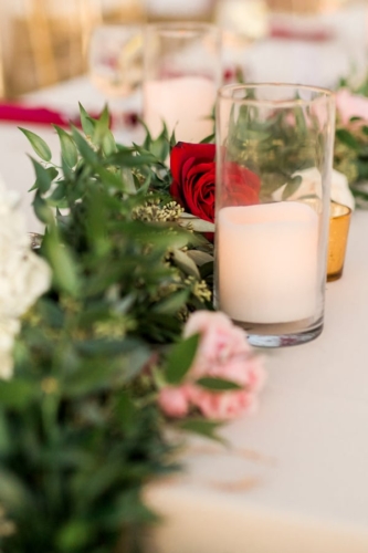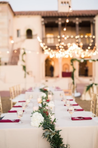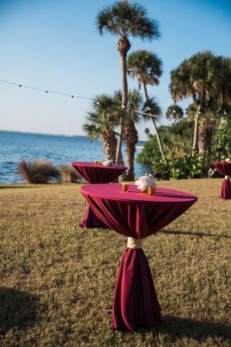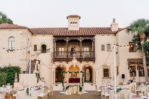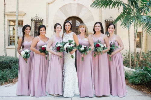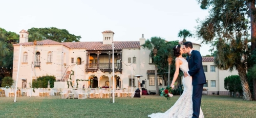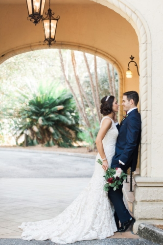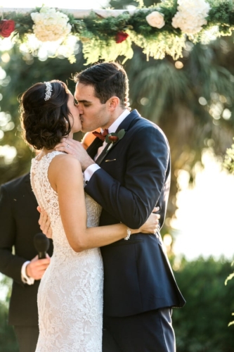 Photographer’s Remarks: “Sarah & Steven’s Powel Crosley Estate wedding had so many incredible details and memorable moments. Plus, this Sarasota wedding venue is one of my all-time-favorites! “This Fall wedding has all the makings of a magazine worthy event. Between Sarah’s stunning wedding gown and the rich red/burgundy tones used at the reception, it was chic, ultra romantic and gloriously elegant. “The pair knows how to work a camera, and I don’t think they had a single bad photo. Hence the over-share for this wedding! The new husband and wife were glowing all day, and after the first look, there was no holding back the emotion. If they weren’t laughing, they were crying happy tears. “When Sarah walked down the aisle with her mom, stopping a moment to pay respects to her late father (they reserved a special seat for him in the front row, with his favorite ball cap), there wasn’t a dry in the room — myself included! “They said their heartfelt vows, sealed their union with a kiss, and then partied into the wee hours. It was a magical night filled with amazing energy. And such an honor to witness and partake.”Gallery