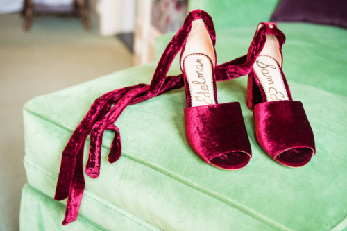 Sarah, a Shelburne native, had the most incredible crushed red velvet heels, and it was only by sheer coincidence that I paired them on top of a green velvet chair. But hearing that their love story took off during the holidays made that pairing of Christmas colors so much more significant.”