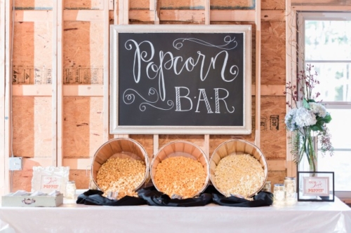 • Barn wedding venues are still a top contender to host your big day and this couple held their reception at a wonderful private residence. Lovin’ the popcorn bar!!