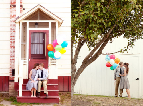 Today’s engagement session, shot by Danielle Gillett, is so adorable — and the couple behind it is even more adorable! Shannon and Jessica met when Shannon was working on the movie Happy Feet and Jessica had just finished up the documentary March of the Penguins. But it wasn’t just penguin love stories that they had in common. They connected over their mutual passion for exploring new places, admiring great films, and enjoying fantastic music soundtracks. Since Up is one of their favorite films (and a great love story) it made sense for them to use Up as the inspiration for their engagement session! We’re loving the result. So cute! Thank you Danielle for sending these images over!Gallery