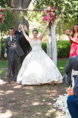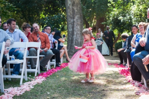 Did you ever see that episode of Modern Family where Lilly chooses Bell’s yellow gown from Beauty and the Beast, to wear as flower girl during Cam and Mitch’s wedding? Â That was a major concern of mine when I let my little niece pick out her flower girl dress using Light in the Box. Lucky for the flower girl below, this wedding at Orcutt Ranch had a dash of Disney inspiration and she was able to wear the brightest pink gown around. I must say she looks absolutely adorable!