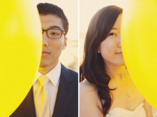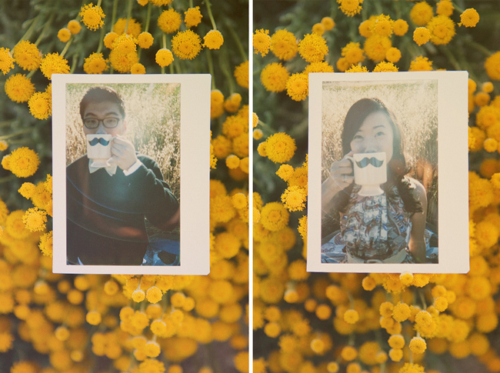 Sharon and Alex are so adorable, from their outfits to their cute little mugs and best of all, their invitations! Their engagement session was captured by Stephanie Williams, whose photography is always so lovely. Mustache mugs…so much cooler than mustaches-on-sticks! Our favorite part of this session is the two yellow balloons that Sharon and Alex brought. We love how they tie in with their invitation design–it’s so clever to make your engagement pictures and invitations play off each other! Thanks Stephanie for sharing this session with us!Gallery