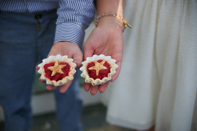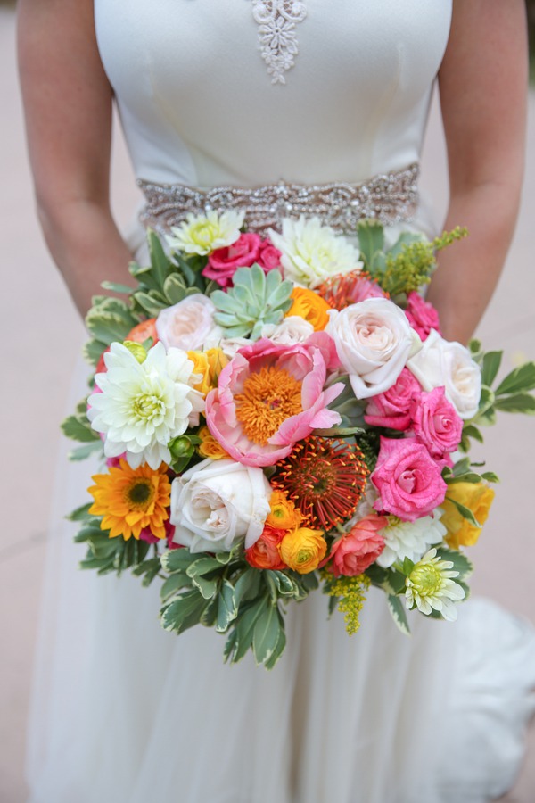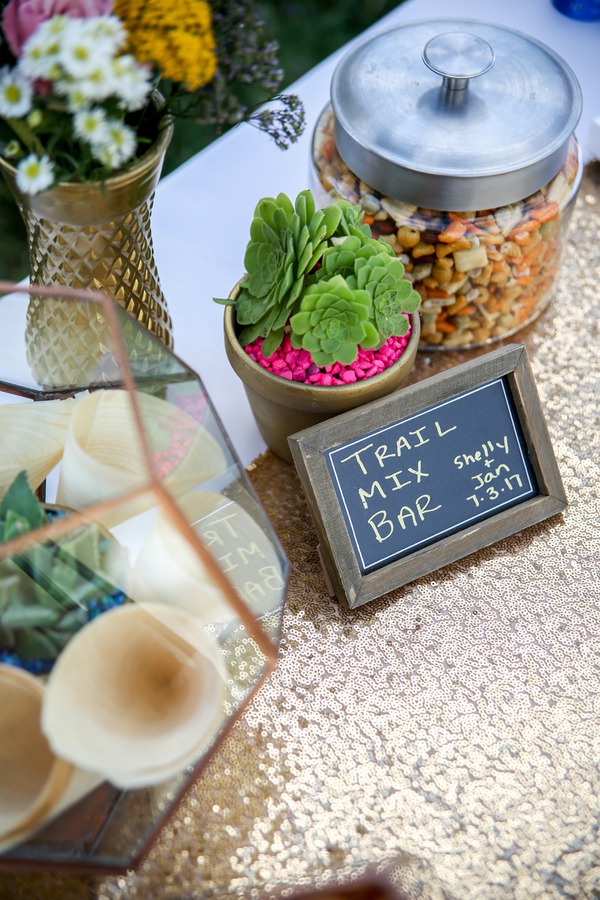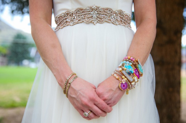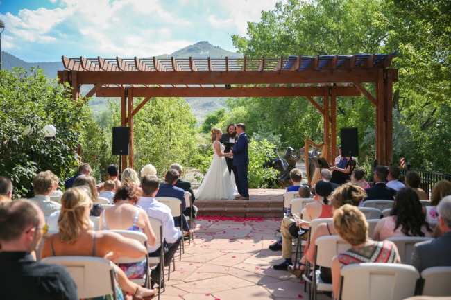 Photographer’s Comments: “Shelly and Jan’s wedding was centered around throwing the most festive party possible, not only to be the happiest day of their lives, but because their closest family and friends were coming from all over and expected to have the most brilliant time. “Their vision was to take their loved ones to their most beloved place in this world: Golden, Colorado. It needed to be right along Clear Creek where they have spent some of the most memorable moments of their relationship. The town, the creek, the beautiful Lookout Mountain shining in the background- this is their home and the most important thing to this couple. “The bride and groom were focused on providing the best party ever for their loved ones, so they choose to not have a wedding party. Shelly was handed down her Mother’s wedding dress, and had it altered slightly to fit her glamorous wedding vision. She added a magical tulle skirt for the wedding ceremony, which was later taken off and stood alone with her stunning belt so she could dance freely the rest of the evening. She choose to have a stunning collection of bracelets that all had powerful stones and rocks that symbolized different feelings and vibrations to the bride. She choose to have a special heirloom pin that belonged to her grandmother to put in the ribbon of her wedding bouquet. “They arranged a grand kick off of their wedding with a beautiful ceremony outside of the historic Golden Hotel. Their guests were given a colorful sparkling glass of champagne with rock candy inside (an ode to their theme of bold colors, sparkling gems, and glamour). “During the ceremony they planted an Aspen with soil from their home towns, shared their own emotional vows, and exchanged rings. “Afterward we headed out with the couple to capture them with their beloved City of Golden, including under the historic Welcome To Golden sign, and the vibrant creek including their special spot on the rock right next to the river. “We then headed just into the Clear Creek Historic Park where a stunning tent was filled with golden vases and bottles holding colorful flowers or peacock feathers fuchsia and teal mercury glass votive candles, golden pots with the most perfect succulents, and a beautiful personalized geode for each guest at their seat. There were sparkling Golden table numbers! And outside the tent there was a welcome table full of a trail mix bar for when the guests arrived, along with sunscreen, and bug spray (everything they needed to feel comfortable in this natural setting). “They decided to hire local Food Trucks for their catering and let their guests have the most delicious wood fired pizza, or one of Bob’s atomic burgers. Later they rocked out a desert food truck that served bite sized brownies, cheese cake, little cherry pies, sprinkled Rice Krispy treats, and even cotton candy! Their trail mix bar turned into a popcorn bar for a late night snack. Guests danced the entire night away!Gallery