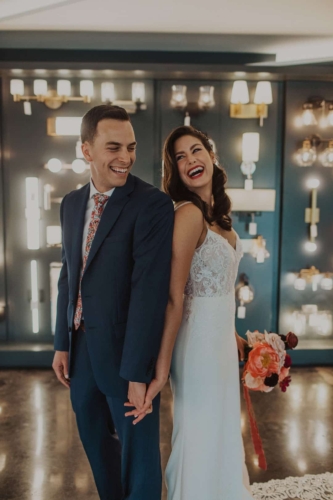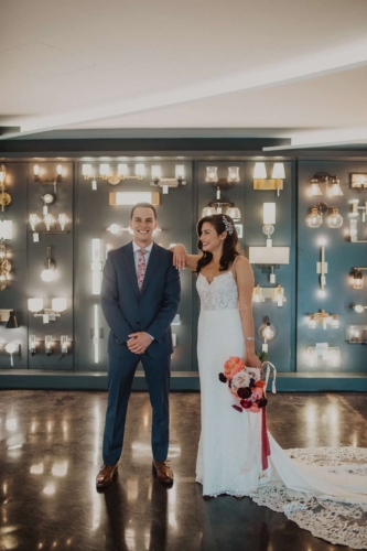 -Their first look (which the bride’s dad drove Shireen to in his vintage car) is truly one of a kind! Shireen and Ryan chose to have their first look portraits in a totally different, not to mention unique place! They did their first look at Dominion Lighting in Arlington, Virginia! They wanted something that was super different from the park where their ceremony was held with a whimsical feel that let us get creative. We loved shooting in this lighting store and getting creative with all of the reflected lights!