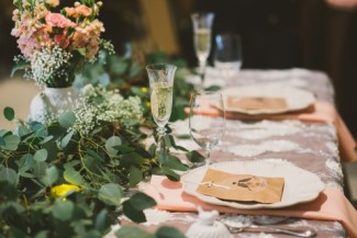 “Their ceremony and reception design was inspired by spring florals along with their love for beautiful, Victorian decor. The music choice at the reception was inspired by a love of swing dancing. Naturally, their first dance was a fun display of swing-dancing, and guests participated in swing dancing throughout the evening.
