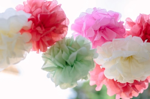 - Lauren’s mother made over three hundred tissue pompon that were used to decorate the garden and courtyard of the villa where the ceremony was held.