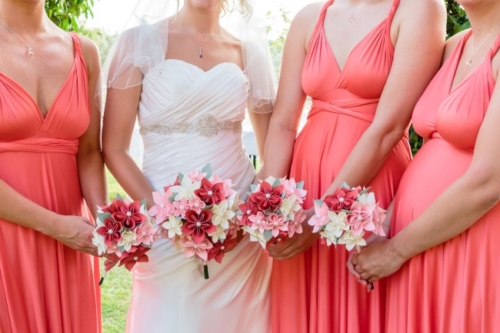 - The three bridesmaids looked stunning in their coral dresses, and created an outstanding feature in the whole design scheme of the event.