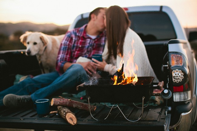 It seems to be a camp fire and s’more kind of week here on L&L.  I must be getting excited for summer or it was the sweet dog, Mogley, that won me over.  Either way this couple is freaking adorable!  I absolutely adore her style and I agree with the photographer that these two should be models. It’s so very sweet to see the playful chemistry flowing between these two in the excited of their engagement. This shoot was captured by Inkspot Photography  and here is what they had to say: