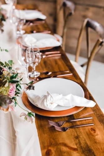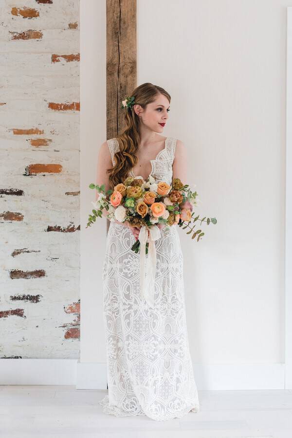Photographer Comments: “An amazing team of wedding vendors came together to create this rustic bohemian-inspired styled wedding, playing with muted spring colors and a relaxed, but elegant, vibe. We not only had a beautiful bride and groom, but two adorable flower girls and their puppies!”Gallery
