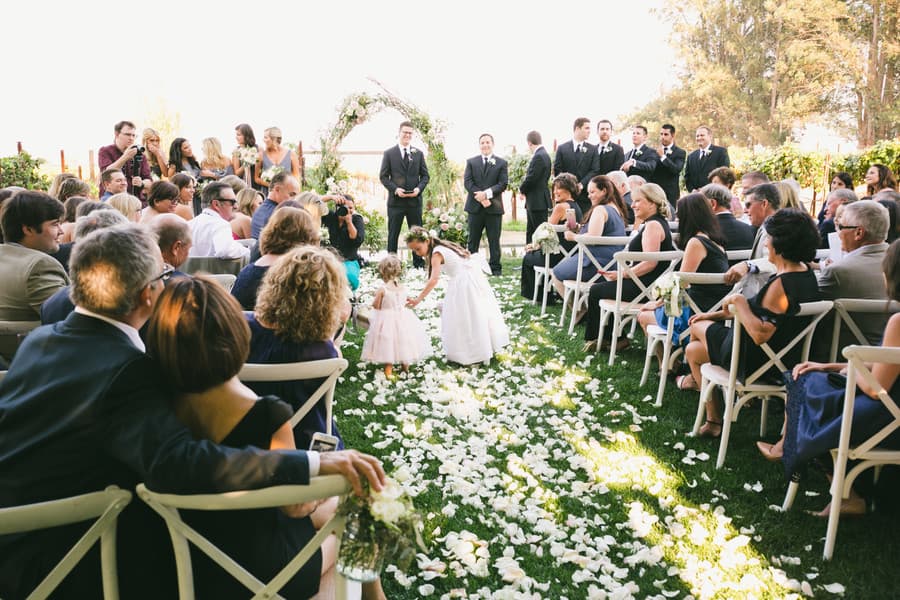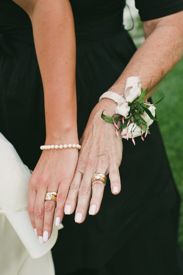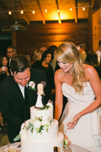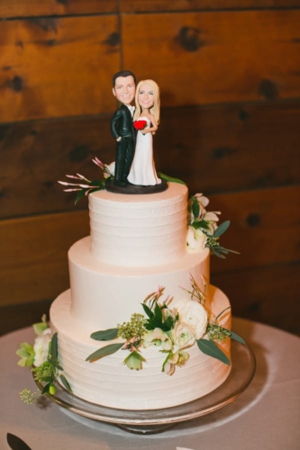 From the bride: “Our #1 goal was for everyone to have FUN! We didn’t want it to be all stuffy and uptight. We wanted to focus on happy, fun things and make everyone feel welcome and at ease. “I custom ordered a funny cake topper that was supposed to be Brian and I because he kept asking for cake toppers of a bride and groom. I initially thought it was tacky, but decided to surprise him at the last minute. “My mom hand wrote all of the signs, including the seating chart. If I am being honest, she didn’t write the ‘Please Find Your Seat’ part of the seating chart and the ‘Dancing Shoes’ sign, but she did the rest! “She practiced calligraphy over the past year and tried to incorporate a little bit of that when she wrote the signs and the seating chart. It was really special to me. “My wedding band and engagement ring are almost identical to my mom’s. I loved hers so much I copied her almost exactly!”Gallery