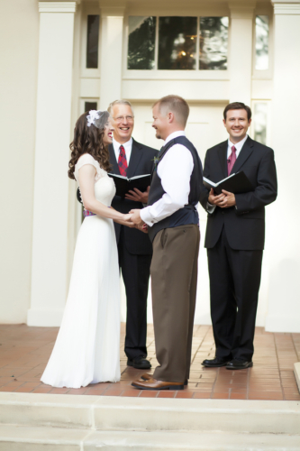 - Our old pastor came from Mississippi to marry us; our new pastor officiated with him, which meant a lot to us since they’ve walked us through our relationship.