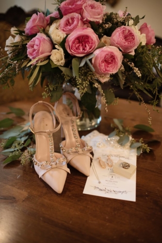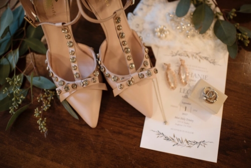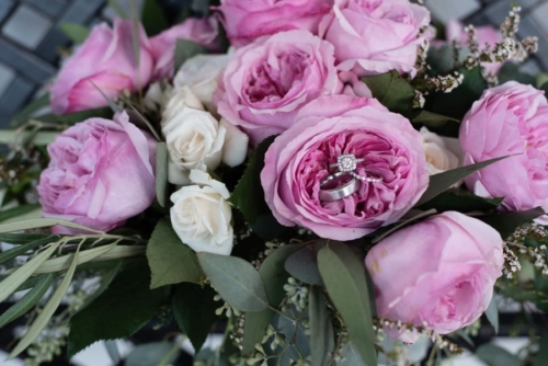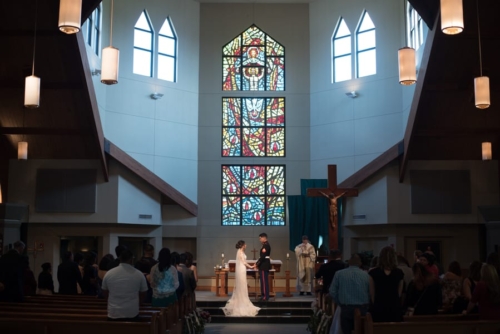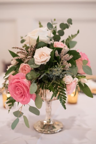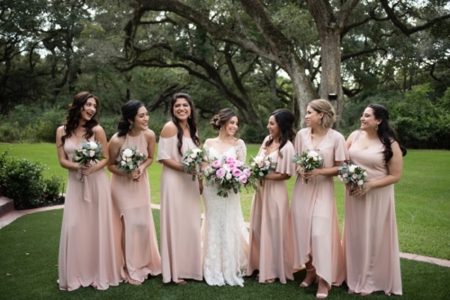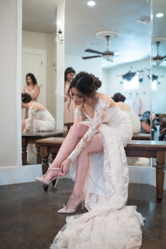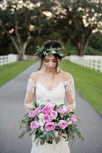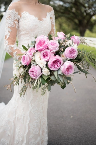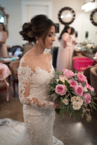 Q: Tell us about your wedding! “The inspiration behind my day mainly came from Pinterest inspiration pictures, I really loved the clean all white with greenery look. My favorite color pallets for my wedding was gold, pinks and white, so thats what it revolved around. “I LOVE candles and sparkly lights in the dark so I knew I had to incorporate candles to give it that romantic glow feel I love. I didn’t know what to name this decor theme but I was going for more of a romantic/boho theme. “I did incorporate cultural religious traditions at the ceremony. Our  ceremony was held at a catholic church, during the ceremony we chose Padrinos de arras  [lucky coins sponsors] which symbolizes the groom’s commitment to supporting the bride and also represent Christ and his apostles. The bride’s acceptance of the arras represents her unconditional confidence and trust in the groom and her vows to be a good administrator of the family’s wealth. “We also had Padrinos de los lazos [tie the knot sponsors], a double rosary with a single cross that would essentially unite the couple in prayer and share the single leadership of Christ for their marriage. We also left flowers for the Virgin Mary after the ceremony in hopes that she will bless the marriage.” Q: Let’s talk wedding decor “For the ceremony I didn’t do much, the church is beautiful as it is so we only added a basket of flowers at the podium. At the reception I just wanted a very romantic effortless look, I simply told my decorator and florist that I wanted loose greenery Eucalyptus everywhere and candles. I had been seeing more and more of the geometric shapes in stores and I knew instantly I wanted these geometric shaped vases, in gold, to be placed as the centerpieces for the guest tables…they added to that boho vibe I wanted to incorporate. “The only thing that was DIY was two gold picture frames on each side of the chimney. They actually belong to my parents, they held my parents wedding pictures from 25 years ago 🙂 I took out the pictures and glass and left the frame open and just tic tacked string and clipped Leon and I’s engagement pictures on the string. “The reception was so beautiful on its own that it really didn’t need much decor.” Q: What were the florals like in your wedding? “I love flowers! I feel like the flowers were what would bring life to the wedding and for that reason we didn’t have a budget for flowers. I knew from the beginning  my bouquet would have pink flowers and unfortunately, my favorite flowers, peonies were not in season. “My second favorite flowers are garden roses. There are sooo many to choose from, but I fell in love with the Carey garden roses. They had to be ordered from David Austin Roses in England. “As for the rest of the bouquet, I just asked for eucalyptus and very messy crescent shape to it. My florist added in whatever else she thought would look good. “My bridesmaids had small bouquet with eucalyptus and a few small pastel roses. I really wanted my bouquet to stand out more, but have their bouquets still look very pretty and noticeable despite their size. It all looked beautiful.” Q: Did you personalize the day in any way? “We didn’t have any personalization at our wedding.Some of my favorite parts were the ceramony, taking pictures with our wedding party, definitely the toast, and dancing the night away after everything was done and nothing was left to stress about.” Q: Let’s talk fashion “I knew that I wanted lace on my dress so I started with that, I also knew I wanted a bohemian look to it so long sleeves was the next detail. With those two in mind I went to a small bridal bouquet in downtown Angeton. They were actually having a trunk show for Stella York that day which had a dress with the exact features I was looking for. “The moment I tried it on I knew it was it. It was lace, had long sleeve and a beautiful open back…and since it was from the trunk show, it was on sale. “So I found my dress at the first wedding shop I visited and the first dress I tried on. What more can a girl ask for right? “As for Leon he found his suite at SuitMart in Wilmington, North Carolina. He wasn’t to hard to pick a suit the only trouble we had for that was picking a shade of grey. We both like cognac so we also looked for shoes and suspenders in that color. Suspenders was more my idea but he liked it old time look to it. We decided to make the guy suspenders and shoes a different shade of brown so that Leon would stand out more. He was really easy when it cam to picking stuff out 🙂 Q: What was the most anticipated or special moment of your wedding day? “The special moment was at the ceremony when we walked down the isle together after saying I do. It was that moment when it was all so real, we had finally did it after everything we went through.It was the happiest moment of the day.” Q: Do you have any wedding planning or marriage advice to share with other couples? “I would like to share that even though wedding planning can be very stressful and sometimes you may feel like no one is helping and its all going bad, you have to center your mind on what is most important, the marriage between you and the one you love most. “Yes, having the day go perfect and look perfect is important, but the actual marriage is what is most important. After stressing about everything I would try and focus my mind on what I was getting from it all – a husband. The fact that we were getting married at the church with our friends and family there was what was most important on that day.”