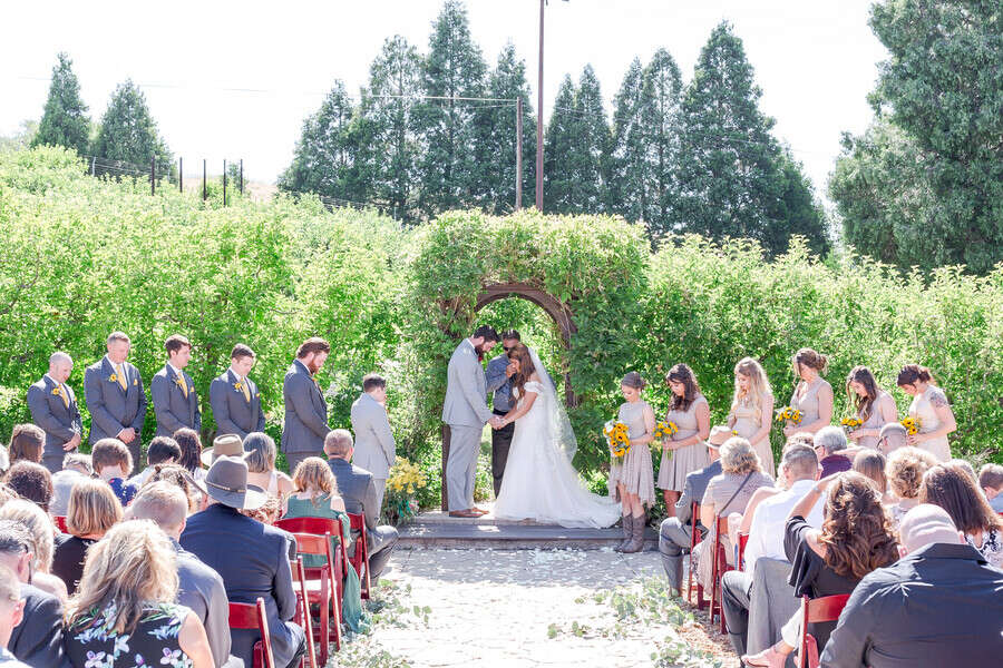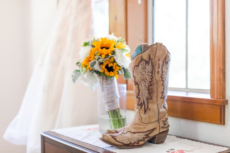 Photographer’s Comments: “Julian, California is a little mountain town, world-famous for its apples. Set at the top of rolling green hills, made up of the largest boulders I’ve ever seen sits the beautiful Apple Lane Orchard! It’s a working apple orchard and cider processing company, and recently, they’ve become a wedding venue! Only a few minutes up the hill is Inspiration Point, the most gorgeous outlook that was the perfect backdrop for Stephanie & Levi’s first portraits as husband and wife! “In case you don’t live in San Diego, let me tell you a little something about 2019. The Chinese calendar states that it’s the year of the pig, but it has been the year of the RAIN!!! “As Stephanie & Levi’s wedding day got closer and closer, I was so worried that their supposed-to-be sunny, summer, mountain wedding would turn into a dark gray mess. But, true love conquers all — including the weather! As the June gloom faded away, the chilly, gray morning turned into a sunshine-filled, unusually warm afternoon, with just the perfect amount of a breeze (hello perfect veil shots). “But even if the weather hadn’t been so cooperative, I knew it was going to affect Stephanie and Levi. After shooting their engagement session, and getting to know these two, it was clear that they were not just celebrating a day. They were celebrating the legacy of love that they were creating together. Plus, these two are just down for a good time, and a little rain wasn’t going to stop anyone! “The theme for their wedding was rustic, country, family and fun. The couple didn’t want to focus on wedding fluff, and instead focused on the bonds between their family and friends! With a color palette of taupe, gray, yellow and sage, I knew that set in the valley of Pine Hills, everything was going to be just beautiful. Stephanie is a true country girl at heart, and let the world know it with her cowboy boots and turquoise jewelry! Her bridesmaids also donned boots and all held sunflower bouquets. They served a BBQ dinner and danced to country music with red solo cups in hand. “Levi is a man of few words. A gentle giant if you will. Some of my favorite parts of the day were watching the love he has for Stephanie appear across his face! His reaction to their first look was just darling. And his expression watching his beautiful bride walk towards him up the aisle was absolutely priceless. I loved watching as they said, “I do,” not only to each other but as Stephanie officially become a second mother to Levi’s son, Reed. (I’m not crying, you’re crying!) “Friends and family really do mean the world to this couple, and it was clear that Stephanie and Levi mean the world to their friends and family too!”Gallery