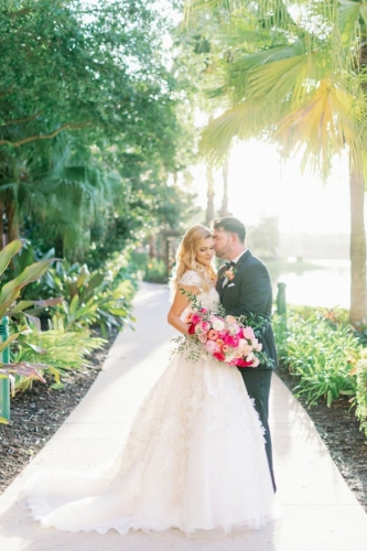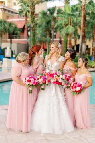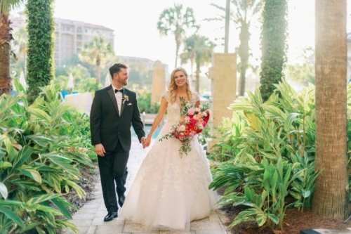 “Sterling and Travis were not going to let anything put a halt to their special day. A couple of weeks before their wedding their venue had to cancel due to COVID issues. They were not to keen on the idea of rescheduling. So with the help from their planner, Nicole with Nicole Squared Events, they were able to find a venue with two weeks to spare! Sterling and Travis got married at the Wyndham Grand Resort in Orlando.