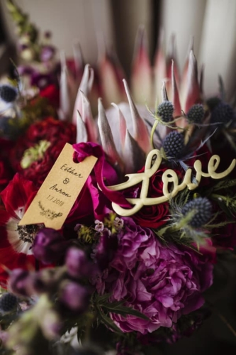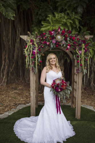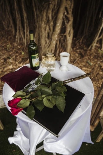 From the Bride: “Our wedding day was magical. It was so rewarding seeing everything that I planned come together. “We both love nature and animals, and wanted to be married under a big banyan tree. Flamingo Gardens was the perfect setting. “I am a creative person so I helped create the moss runners, table numbers, I created the seating chart by writing on seagrape leaves, and I designed and printed the wedding invitations as well. I am a graphic designer so I was very excited about designing them.”Gallery
