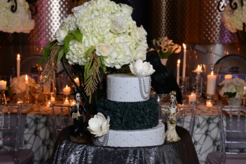 Halloween is fast approaching, and with it comes scary spider + skeleton decor, a black and white color scheme, as well as inspiration for a Bride of Frankenstein wedding! Today’s featured styled wedding from last year proves that you can host a wedding in just about any style you prefer. Black crow on the cake table is optional, but highly recommended!
