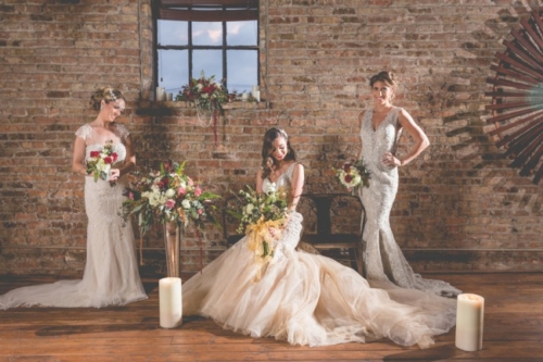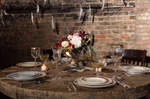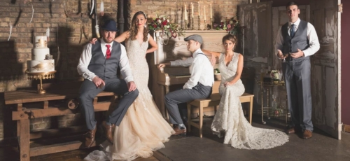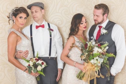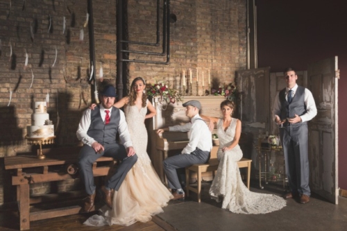 Photographer’s Remarks: “This styled shoot was definitely a labor of love. Ashley Radosav of Ashley Nicole Events and I spent four months planning every detail to stay as true to the prohibition era as possible while giving it a modern flare so that brides and grooms would want to mimic this unique and sultry style. “The shoot took place at The Haight in downtown Elgin, a popular wedding venue known for it’s exposed brick and industrial appearance. Our colors were a metallic blend of gold, copper and silver with a hint of dark red.”