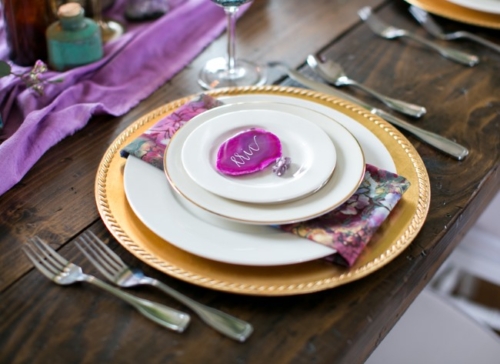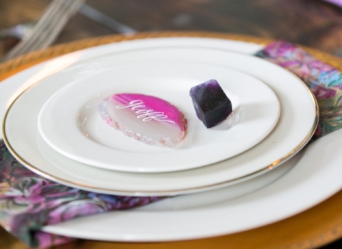 As a gemstone collector in my youth, I truly appreciate the creative energy it took to transform a seemingly obscure hobby (gemstones) and capture an entire style and wedding theme — love it! As today’s feature shows, even rare earth rocks and minerals can become something elegant and special for your big day.