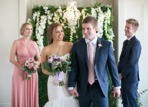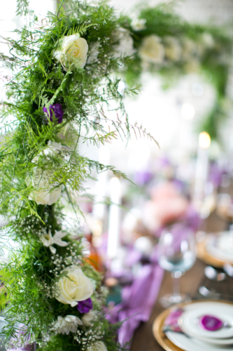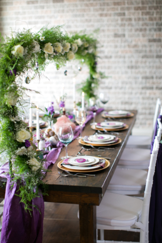 “We wanted to keep the feel light and airy with big pops of colors. The blush Justin Alexander wedding dress was a fun touch to match the colors of the shoot.