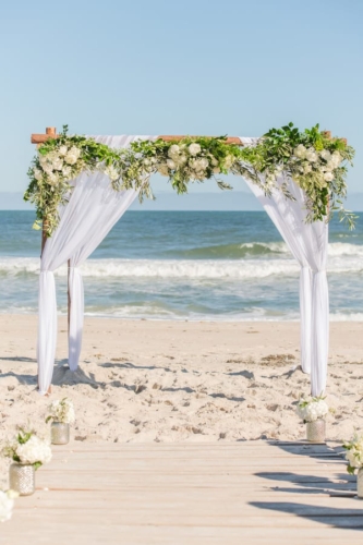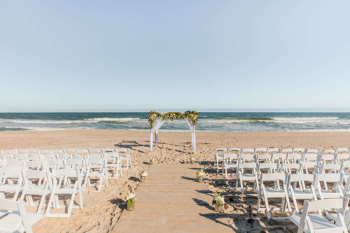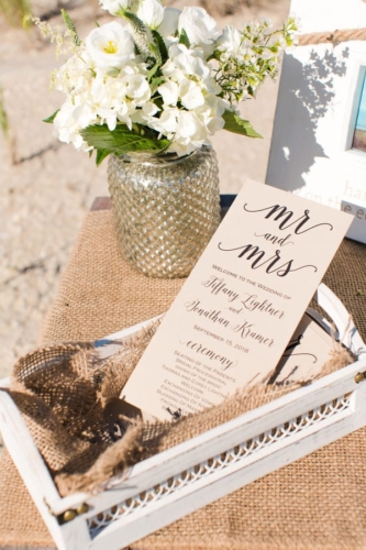 Photographer’s Comments: “Tiffany & Jon had a stunning beach-font wedding ceremony on the Atlantic Ocean with a tented reception at the Long Beach Island Foundation for Arts and Sciences wedding reception. “The Foundation of Arts and Sciences is an exceptionally unique wedding venue. It features a large interior space with super-high ceilings to house its art gallery. The space is best described as industrial-art-chic. “Tiffany and Jon chose to get married on the beach down the street from Jon’s family home. Afterwards, they walked down the street to celebrate at their cocktail hour in the gallery at the LBIF, followed by a stunning sailcloth tented reception.” “Jon and Tiffany met in the Summer of 2015. They meet in classic summer-romance fashion: Tiffany was on vacation with her family on Long Beach Island, NJ, and went out for the evening at a local dive bar. After an hour of discretely admiring his dimples and dark brown eyes from across the room, Tiffany finally built up the courage to approach him. Jon asked for her number, and two days later they went on their first date for lunch. The rest is history! “Tiffany and Jon planned a beautiful wedding filled with gorgeous florals and a pale pink and cream palette. But the core of their wedding day design centered on finding beautiful ways to incorporate their love of family in their special day. Among Tiffany’s bridesmaids was the groom’s grandmother. Tiffany chose to be escorted down the aisle by both her father and her brother, and the groom’s best man was his father. “The weather was a little spotty leading up to the week of Tiffany and Jon’s wedding, but boy did it ever hold out for these two love birds! They ended up getting one of the most beautiful days on the beach to celebrate surrounded by family and friends! There was a moment or two, where we considered putting their rain plan into action. But there was no need, when the weather shifted the day before, they were treated to a stunning afternoon, evening and OMG, the sunset!”Gallery
