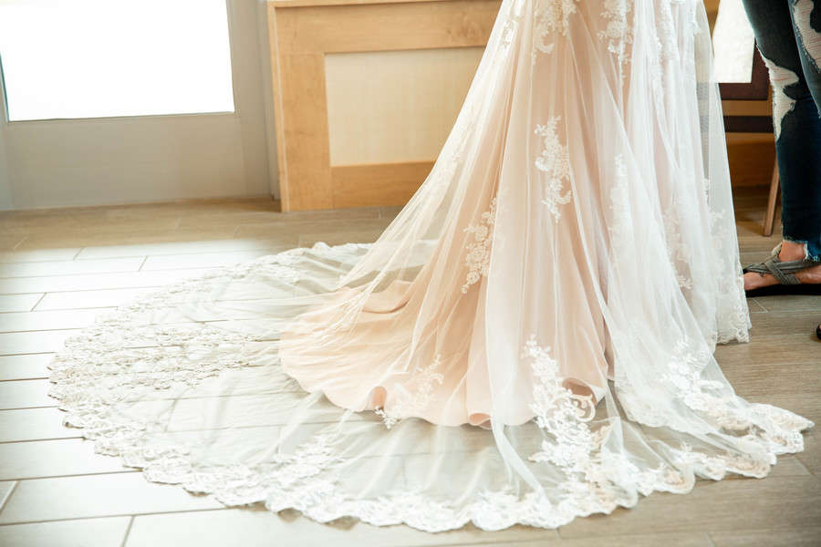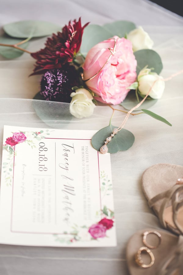 Photographer’s Comments: “During their first look, they giggled as he tried to “hold it together” but there wasn’t a dry eye when she walked down the aisle. The look that the groom had on his face was priceless. This shy groom beamed at the site of his bride, his eyes brimming with tears of joy. It was a beautiful moment watching them walk out of church, hand in hand. That moment made every other part of the day seem to fade away. There was 100-degree and humid weather and that didn’t seem to matter. “His love letter to her said, ‘Over the last 1500 and some-odd days you have been the biggest blessing in my life, my biggest supporter…You motivate me to be the best person I can be… I will love you more than anyone or anything in the world.’ “Her love letter responded with, ‘I love you so much. I’m so excited to know that at the end of this day I get to call you my husband.’ “It was such a joy to witness their love! The way that the families came together to support and encourage them was beautiful! I have a soft spot for all things romantic and Eucalyptus and this wedding had both of those things in abundance! It was one of those days I could go to again and again!”Gallery