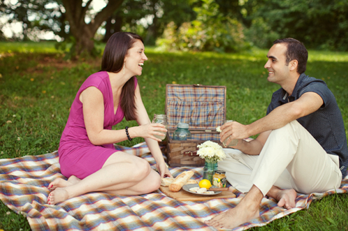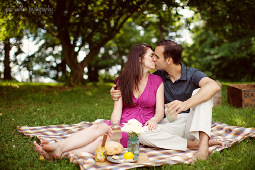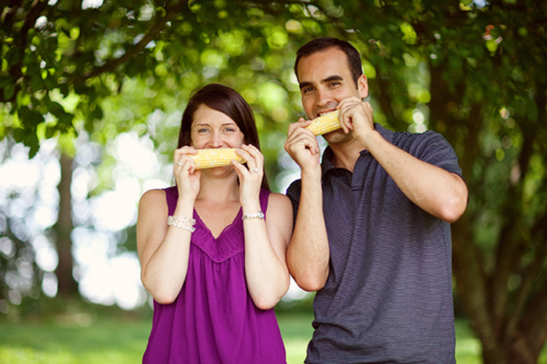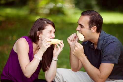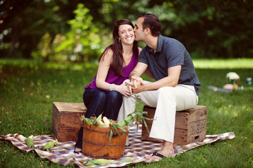 Today’s engagement session was shot by Jodi Miller Photography, one of our favorite photography teams (who also happen to be planning their own wedding)! Travis and Leah are so cute and the props are just perfect. They came up with the idea of a rustic picnic and shucking corn, and Lynn of Sunshowers and Rainshine helped to style the session. Leah’s ring is gorgeous, and we love the use of Scrabble tiles! They’re so simple but make for such adorable photos. Thanks Jodi for letting us share this session!Gallery