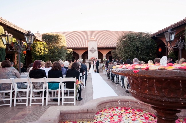 Today’s wedding is a Tuscan styles venue that has a gorgeous ceremony site with a grand fireplace and fountain. Absolutely stunning work captured by Jill Lauren Photography.