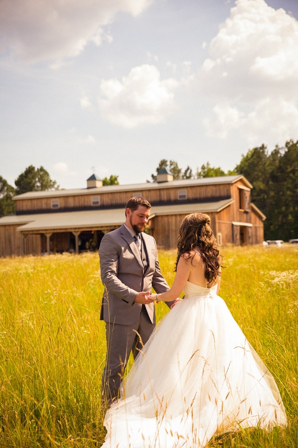 Photographer’s Remarks: “Valaree and John are one of our all time favorite couples that we have worked with. They are madly in love, absolutely gorgeous and FUN! I mean what more can you ask for? “When we got to the venue I saw this gorgeous big open area with gorgeous long grass and I immediately wanted to do the first look there. Normally I would never ask a bride to walk through that grass in their dress. However, I knew that John and Valaree would be just as excited as I was, and the spiders that were jumping around in the grass wouldn’t bother them at all, lol. “The entire day was filled with so many special moments. Valaree paid tribute to her Dad who had passed away throughout the day. While she was getting ready she wore a red flannel shirt that was her fathers. “The boots that she wore were given to her by her father and the hat that her brother wore as he walked her down the aisle was also her dads. “Outside of the reception they had this beautiful wooden ladder where they displayed pictures of their loved ones who had passed. It was such a beautiful and unique way to pay tribute to their loved ones. “John and Valaree definitely love to laugh with one another and they did that so much throughout the day. During the ceremony while placing the ring on Valaree’s finger he added a little something extra to his vows that had us all laughing. Then when it came time for the first kiss, his best man had to help him out and give him a few tic tacs before he did the deed. “Valaree just did not stop smiling. Oh and it didn’t end there! During the reception when it cam time for the garter pull John had another trick up his sleeve. Valaree was in tears! “The night ended with a lighted balloon release which was another tribute to her daddy, sending the balloons up to Heaven so that he could celebrate as well. “Make sure you take a peek at the video if you have a few minutes. They really are the sweetest, most fun couple ever!About This Wedding