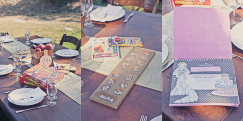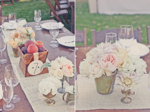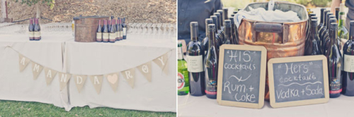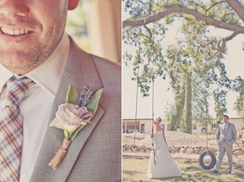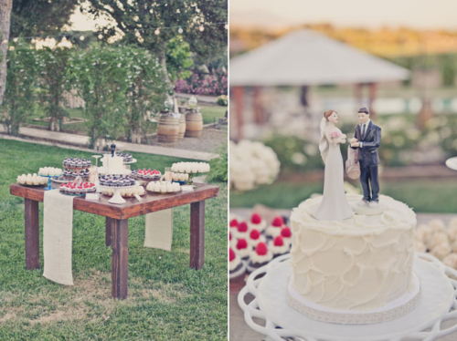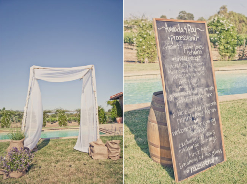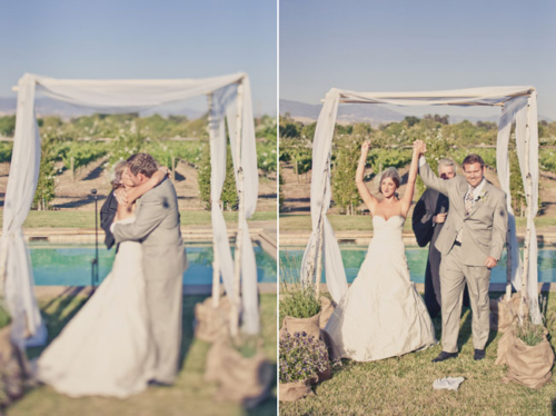 “Our venue was the best decoration of them all: a private residence surrounded by vineyards and mountains in the Santa Ynez Valley. And, we were their first wedding! I loved our long, wood tables that were simply accented with burlap table runners I had made from Etsy, elegant flower arrangements, fruit and candles. Not only did we have mini cupcakes for dessert, we had an England inspired candy bar (it was an homage to my English husband). The candy bar was a hit! We are big snowboarders so instead of a guest book, we had a snowboard made with our logo and asked guests sign the board that we’ll hang on our wall. Our theme was rustic romantic and every element of the wedding encompassed just that. It’s so hard to pick out just a few details – I’m biased!”What else did you learn while planning your wedding?
