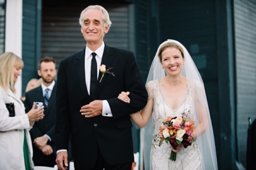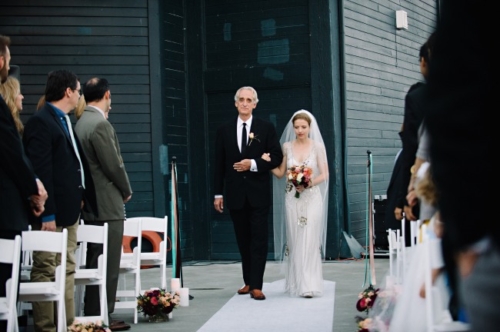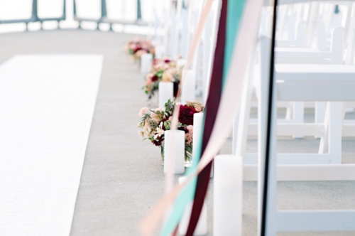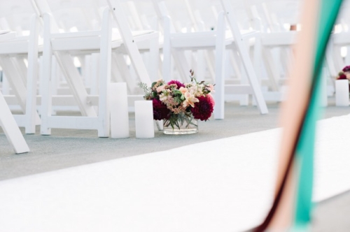 Wedding coordinator comments: “The day before their wedding it poured rain, and the forecast for the wedding day was 90% chance of rain. We rehearsed the ceremony inside, thinking there was no way we would end up on Seattle Aquariums gorgeous pier over-looking the Puget Sound for the ceremony.