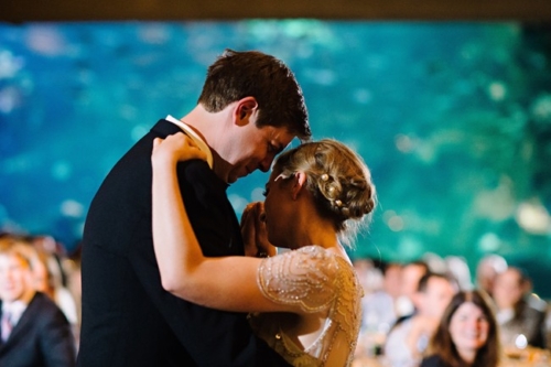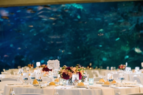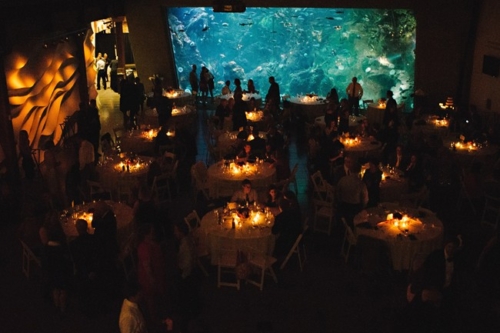 The wedding guests had free reign of the aquarium throughout the evening, and got quite the treat after the ceremony during cocktail hour watching the sea otters and babies eat their dinner. To top it off the bride wore an absolutely stunning Jenny Packham Eden gown in platinum that was adorned with gorgeous beading and texture. A top notch unique wedding venue in my opinion!