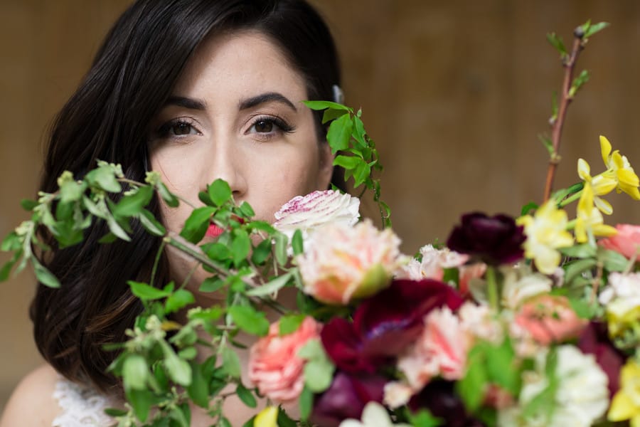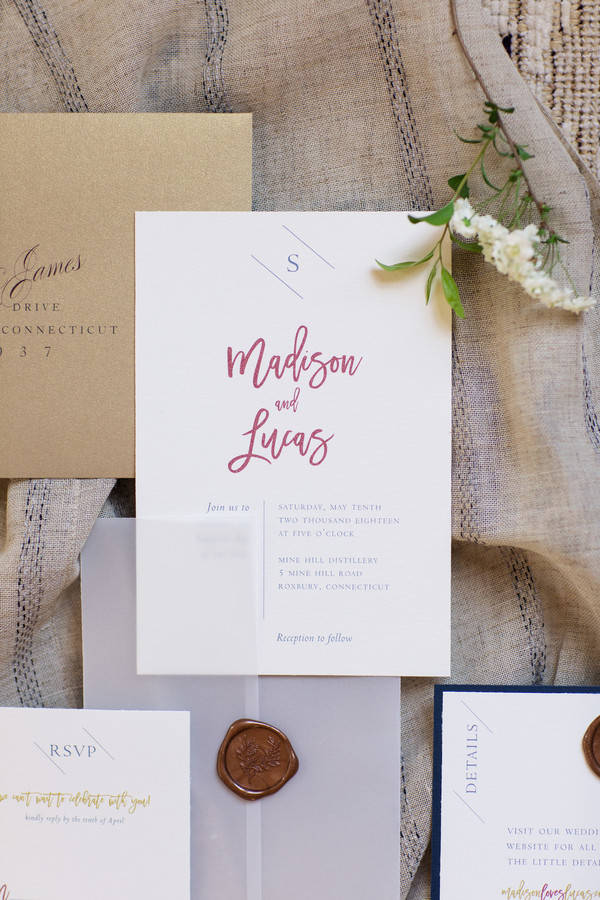 Photographer’s Comments: “For this styled shoot we were inspired by the wedding venue, Mine Hill Distillery and its history. This historic location, once a cigar rolling factory and now a distillery and event venue, is New England to the core. Everything that could be re-purposed and salvaged from the original building was, and it created a completely unique space. “The historic exteriors are complimented by unique, modern interiors that showcase the craftsmanship of yesterday and today. A team of local builders, craftsmen and merchants helped restore and adapt the 19th Century landmark, saving a central part of Roxbury’s history and creating something new and exciting. “Mine Hill Distillery has the perfect mix of rustic and modern elements. As a guest to Mine Hill Distillery you get to experience the beautiful Mine Hills of Connecticut that are saturated with century old trees, land that holds buildings that have been around for over 200 years as well as a new aged Connecticut distillery. “To accent the venues beauty we brought on some special details that we thought would highlight the venues unique style. First, we have the vintage and classic handmade heels both the bridesmaid and bride wore by House of Elliot. The ties were specially designed by Knotty Tie’s to accent the colors of spring in Connecticut and the century old trees that align the property. The stationary created by Avante Garde Design plays into the modern elements, while Six at the Table’s table styling captured the pure rustic feel of the space. “The florals were all foraged by Angie Wilson, a freelance florist that works closely with Eddy Farms in Newington, CT. She focused on accenting nature in its newest form during spring time in Connecticut! We kept the florals light to allow the space to do most of the talking. “To keep the space fun and creative Cat Wilcox designed backdrops for our lace cake by Imagination Cakes and the guest book by This Delightful Design and escort card table. Each backdrop was carefully designed to blend the modern, and yet rustic feel of the space. Not to mention, the escort cards are held carefully within Cuban cigars for guest to find their seats, and grab a cigar! “When whiskey, Cuban cigars and classic cars come together for your wedding day, you know it is going to be a good time!”Gallery