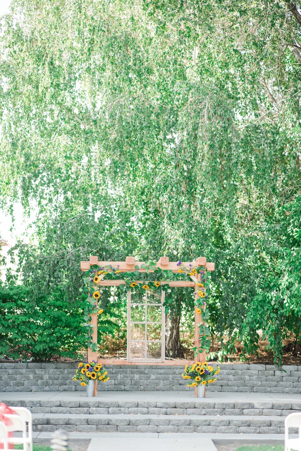 Gorgeous sunflower display for the alter and as decor. Sunflowers are one of those super cheerful flowers that we just love to see in real weddings.