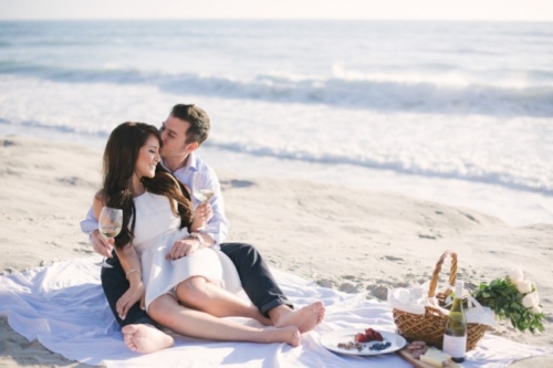 I’m a sucker for a good picnic engagement shoot! Gorgeous couple, sunny beach, along with delicious looking picnic food and a crisp glass of California white makes for wonderful memories for these two love birds. The photos of save-the-date written on a wood plank will surely provide for nice custom wedding stationery options. Photographer’s Comments: “Chris and Meliza have a taste for good wine and cheese and wanted to incorporate that into their engagement shoot. Add the beach as a backdrop and we had the best time celebrating their recent engagement.”Gallery