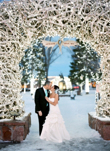 A wonderful 6,000 square foot log cabin constructed using massive 200 year old logs brought in from Yellowstone National Park. The Bentwood Inn is located near the world famous Jackson Hole Ski area at Teton Village. Warm and inviting would be the two words one uses to describe this picturesque winter wedding venue.  A warm fireplace, sumptuous leather seating, and a view of the snow falling outside all sound like a wonderful way to spend some time in Wyoming. So beautiful! Thanks for sharing these photos, Carrie.