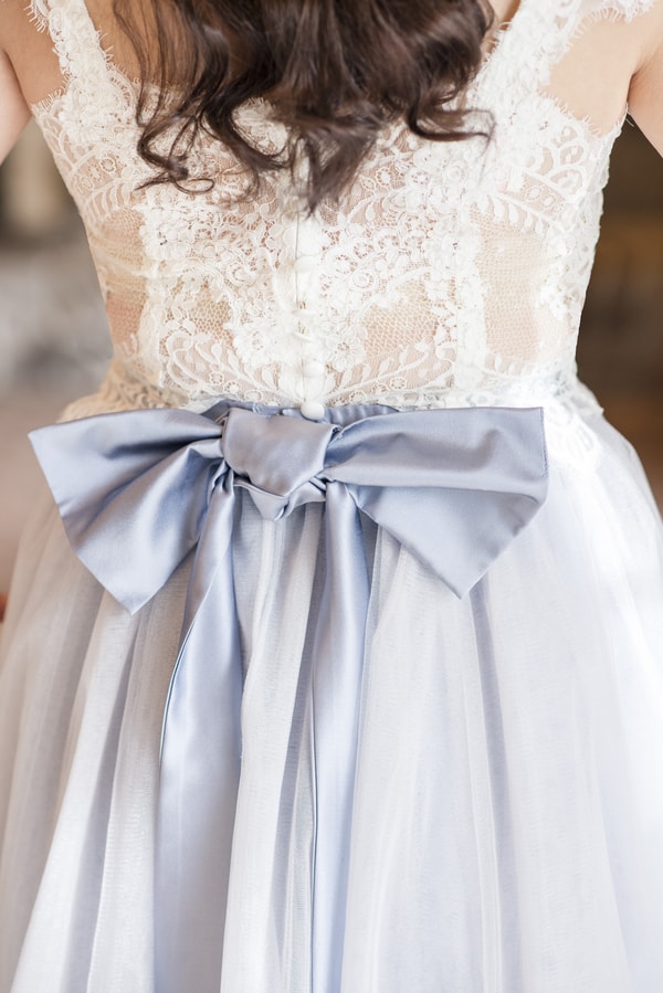 - The wedding gown was to simply “freeze” for with the detailed bow, lace and hues.