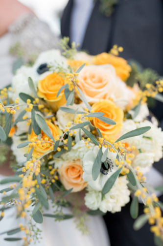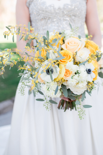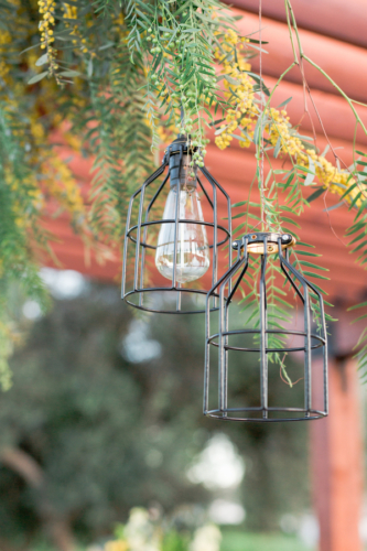 We love the simple ‘industrial meets outdoors’ vibe that pairs so well with fun and cheerful yellow floral arrangements and bridal bouquet, along with the funky cake design and light bulb decor.