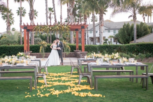 Today’s featured styled wedding was held at the Karlan Hotel in San Diego. The team behind the shoot based their inspiration off the remodel of the hotel, which has a lot of industrial elements with yellow tones throughout.