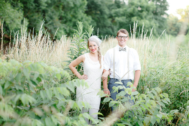Jenny Haas is one of those people who can whip something together really quickly and have it turn out amazing. She told us this shoot was rather last minute and she “just wanted to do something simple and a little earthy feeling for early fall.” Jenny, we’re in awe of your many talents (photographer, baker, veil designer, and stylist!) and we absolutely love how your little “last-minute” shoot turned out! Lydia and Reed were the models and they’re pretty awesome as well. Lydia’s eyes are so striking, and those red lips & fishtail braid are perfect.